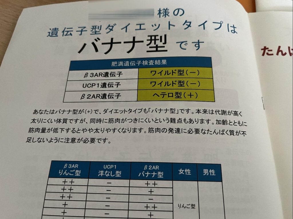 検査結果は、私の遺伝子型ダイエットタイプは「バナナ型」と言われるものでした。
